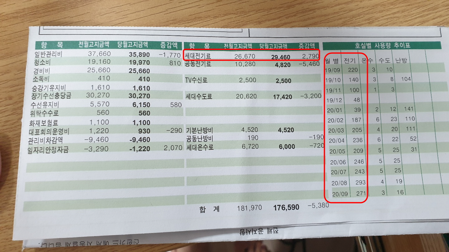 저의 경우는 20/01 에 이사를 들어왔습니다. 따라서 이전 기록은 의미가 없으니 20/02 ~ 20/03의 사용량과 에어컨 사용이 끝난 지난 20/09의 기록 3개를 참고하였습니다.