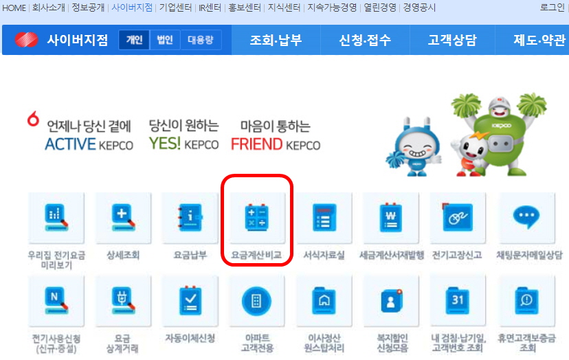 위의 과정대로 계산하기가 어렵거나 귀찮으신 분들은 한전 사이버지점 홈페이지에서 아래와 같은 메뉴가 있으니, 편하게 계산해 보셔도 됩니다.